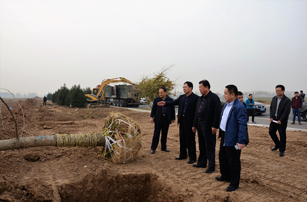 11月7日上午,聊城市大督查落实委员会办公室涂正奎主任和市创森指挥部办公室蒋新民主任带队对东阿县创森以来新栽苗木的管护工作进展情况进行督查。副县长题宗国陪同活动。