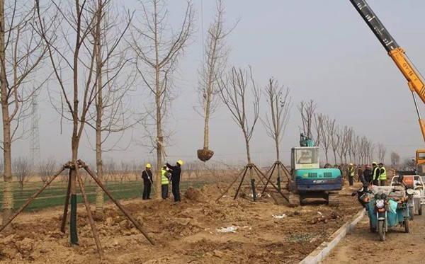 目前,茌东大道道路绿化正在积极施工中。
