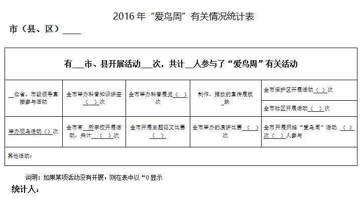 附件:2016年“爱鸟周”有关情况统计表