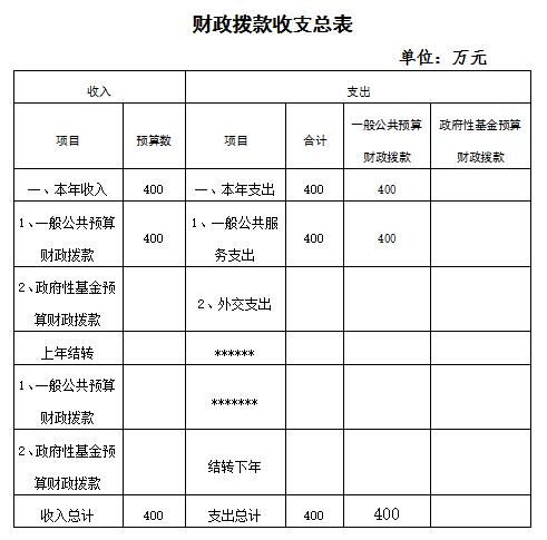 2016年收入预算为 400万元,其中:财政拨款 400万元、专户管理的收入 万元、事业收入(不含教育收费)万元、事业单位经营收入 万元、其他收入 万元、上级补助收入 万元、附属单位上缴收入 万元、上年结转 万元。