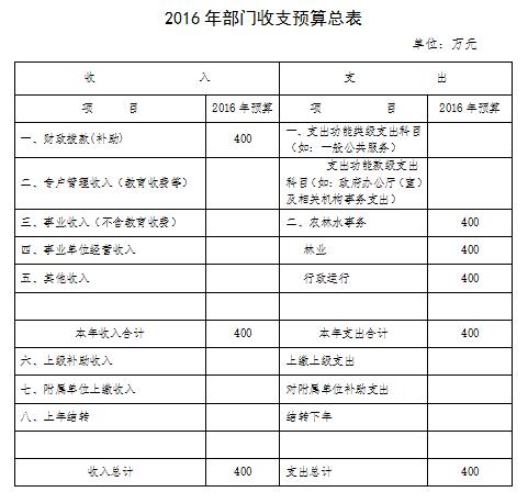 2016年支出预算为400万元,其中:农林水事务支出400万元。