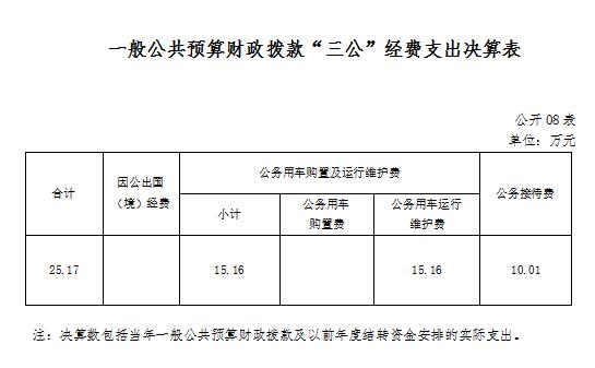 公用经费25.17万元,主要包括:办公费、印刷费、咨询费、手续费、水费、电费、邮电费、取暖费、物业管理费、差旅费、因公出国(境)费、维修(护)费、租赁费、会议费、培训费、公务接待费、专用材料费、劳务费、委托业务费、工会经费、福利费、公务用车运行维护费、其他交通费用、其他商品和服务支出。
