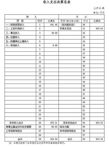 一、收入支出决算总表
