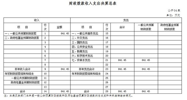 四、财政拨款收入支出决算总表