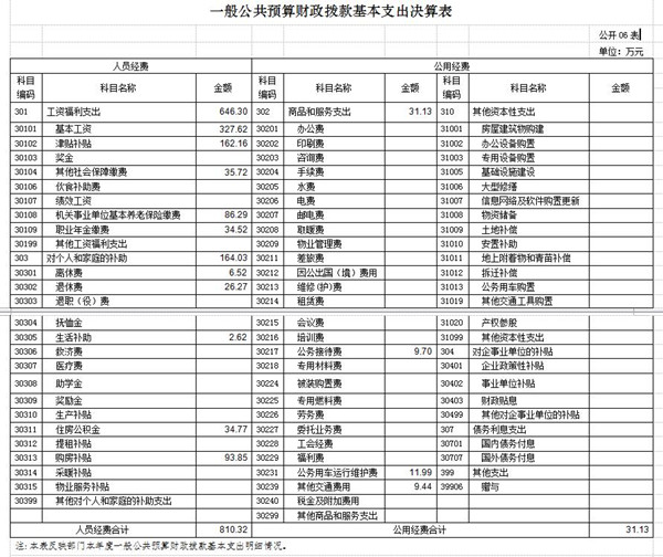 2016年度一般公共预算财政拨款基本支出决算 841.45万元,包括人员经费和公用经费,支出具体情况如下: