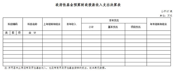 七、政府性基金预算财政拨款收入支出决算表