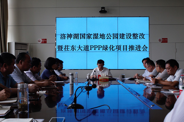 9月27日下午,洛神湖国家湿地公园建设整改暨茌东大道PPP绿化项目推进会召开。县委副书记、县长马广朋,副县长题宗国,东阿经济开发区管委会主任张庆辉出席会议。