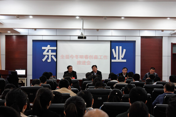 10月9日上午,我县召开今冬明春创森工作推进会议。副县长题宗国出席会议并讲话。各乡镇(街道)分管乡镇长(主任)、林业站长,县财政局、住建局、交通局、水务局等县直有关部门分管同志、东方园林、东星科技有限公司参加会议。
